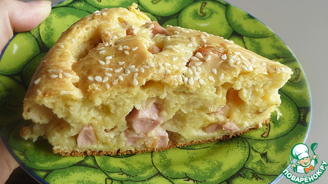 Ленивый пирог с колбасой и сыром