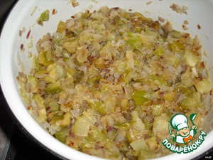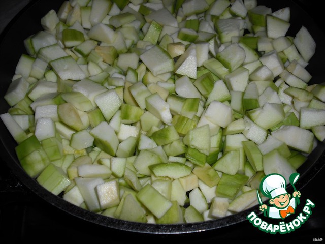 3. Нарезать мелкими кубиками кабачки. Лук мелко нашинковать.
