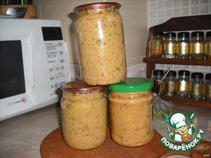 8. Насыпаем в банки и закатать. Так как икра с майонезом банки поставить в погреб или холодильник. Употребить в течении 3-5 месяцев!
