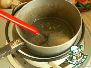 Желатин растворить в 3 ст. л. воды, оставить набухать 5 минут. Поставить емкость на водяную баню и полностью растворить желатин.