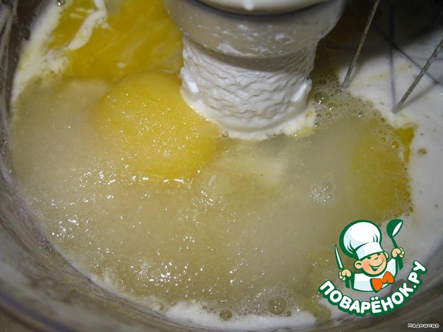 Добела растираем желтки с сахаром и лимонной цедрой.