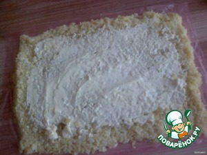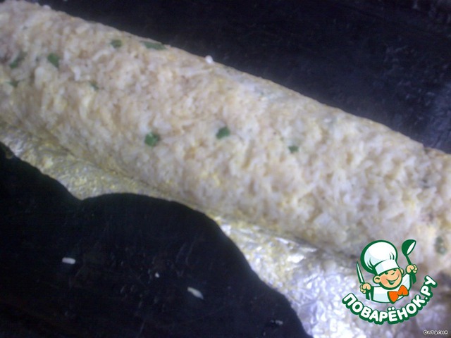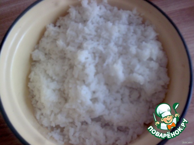Расстелить на противень лист пищевой фольги и разложить на нее рис. Я делала на полиэтилене, но при перекладывании на противень он начал рассыпаться, кое как переложила на фольгу. Поэтому сразу исправляюсь и пишу как лучше сделать