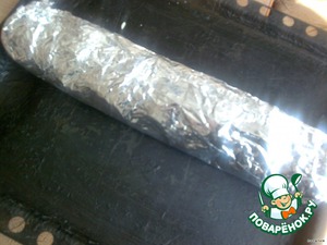 Завернуть в рулет в фольгу и поставить в духовку на 30 минут.