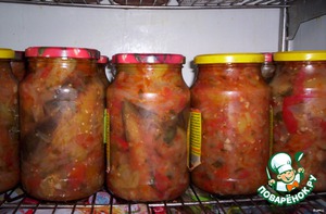 - в сухие банки разложить закуску (горький перец в банки не класть),закрыть крышкой,"укутать" на 24часа,если в помещении очень тепло, 10дней выдержать в холодильнике.