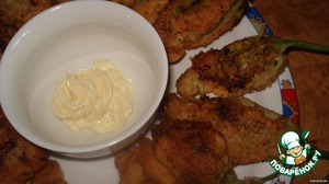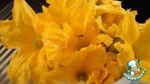 Процесс жарки: нейтральное растительное масло разогреваем до кипения, в нём обжаривaем до румяной золотистой хрустящей корочки цветочки, затем выкладываем на бумажное полотенечко, чтоб впитался жир... Сервируем вместе с соусом - но каждый на своей тарелке...
