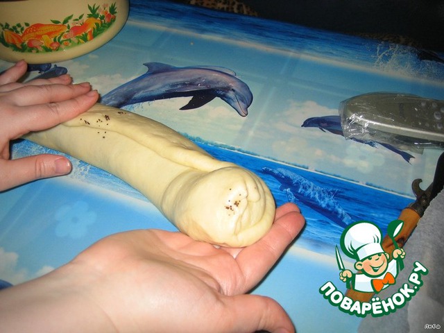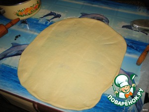 Тесто подошло, мы берем нужный кусок теста и начинаем раскатывать.