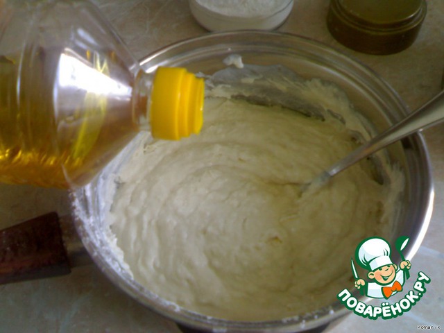 Что бы оладьи лучше снимались доливаем в почти готовое тесто немного растительного масла (те самые 2 ст. л.)