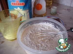 Затем постепенно добавлять муку с разрыхлителем и размешивать аккуратно венчиком до однородной массы.