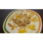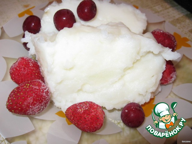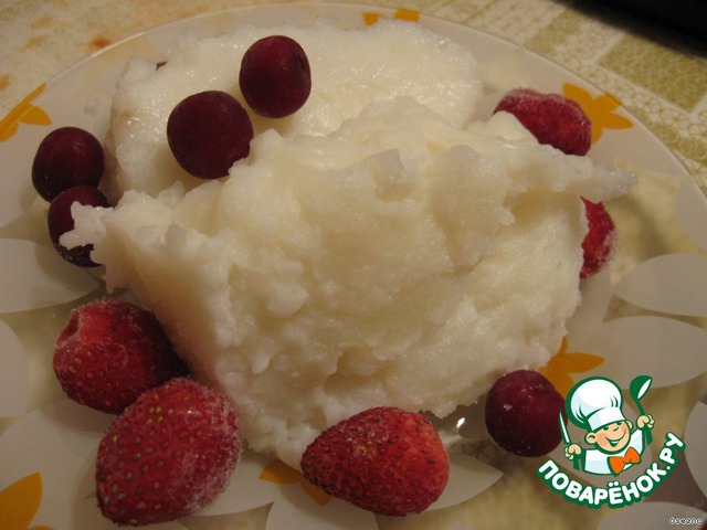 Много не скушаешь, сладко и сразу наедаешься))) Долго ломала голову, с чем это есть. Наверное,хорошо бы взбить в блендере просто какие-нибудь ягоды, покислее, и поливать потом...Или ягоды с простым йогуртом.