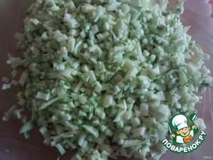 Кабачки мелко порезать( кожицу я не удаляла, так как у меня были молодые кабачки, если старые-очистить).