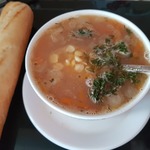 Лук, морковь и перец из лечо порезать кубиком и поджарить в масле. Морковь можно через терку. Добавить томат пасту. Заправить бульон.