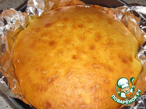 Противень хорошенько смазать сливочным маслом и выложить на него тесто. Выпекаем 30 минут при 180 градусах в предварительно разогретой духовке.