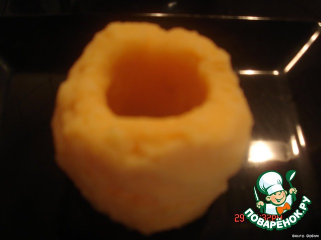 отварить картофель и потолочь с соком моркови,уложить на блюдо и придать форму