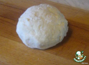 Делаем тесто. Смешиваем муку с солью. Масло нарезаем на мелкие кубики и добавляем в муку. Хорошо перемешиваем и постепенно вливаем воду. Делаем из теста комок и убираем на время в холодильник.