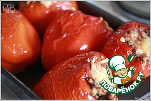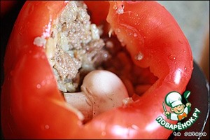 Увидев сегодня в магазине огромные красные перцы, я почему-то их тут же представила в фаршированном виде :) В общем, жуть как захотелось фаршированных перчиков... Да, и два вида фарша у меня давно уже "жили" в холодильнике. В итоге получилось вот такое.