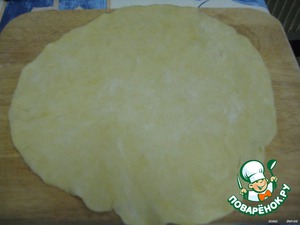 Тесто тонко раскатываем соответственно размеру формы.