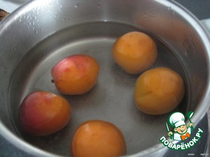 Абрикосы опускаем в кипящую воду на 1-2 минуты и вынимаем,