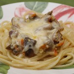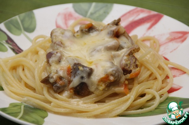 Для этого отваренные спагетти следует выложить на противень в виде гнезда.