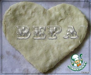 Раскатать тесто, вырезать сердце при помощи формы. Уложить на выстланный