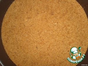 Печенье размолоть в крошку. Смешать с растопленным сливочным маслом и выложить в разъемную форму. Придавить руками, хорошо уплотнить.