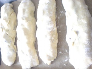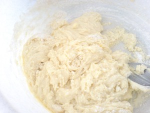 Добавить один стакан сметаны смешанной с содой и солью. Добавить муку и вымешать не очень густое тесто.