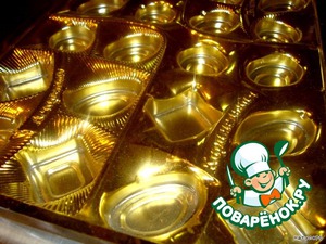 Шоколад растапливаем и вливаем в каждое углубление по половинке чайной ложки.