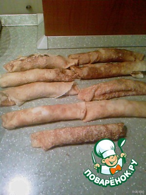 Из молока, яйца и муки замешиваем тесто и выпекаем тоненькие блинчики ( у меня получилось 11 штук)