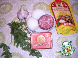 Сырок и яйца натереть на терке. Чеснок пропустить через пресс.