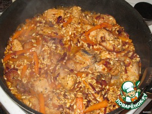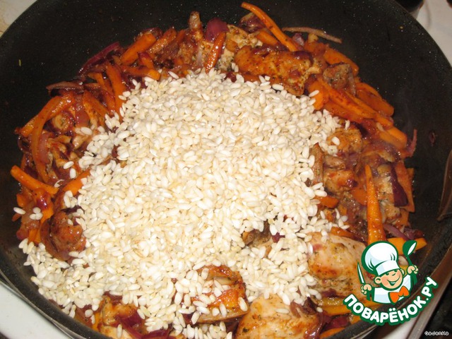 Опять хочу в Италию, жуть как хочу, вот и решила обустроить наш скромный ужин в духе итальянской кухни. За принцип приготовления взяла ризотто, только всех ингредиентов у меня было почти поровну, рис в блюде не доминирует, вообще, если честно, скребла по сусекам, а вот что туда вошло и как, заходите в гости, обещаю будет невероятно вкусно, ароматно, очень сытно, а времени занимает мало и не трудоемко, опять же главное, не надо пачкать кучу посуды)))