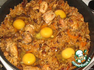После чего можно попробовать, если рис готов и вода выпарилась приступим к еще одному вкусному шагу, последнему ))