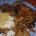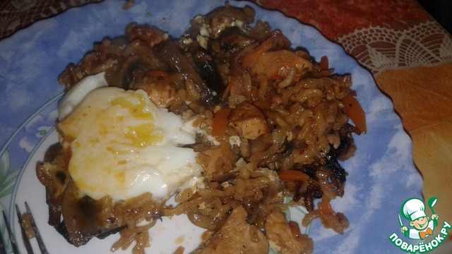 Вообще грибы планировались для другого мероприятия, но достав рис, которого был всего стакан, решила собрать сюда всякой съедобной снеди, чтобы хоть как-то было побольше, да и не одна курица )))
