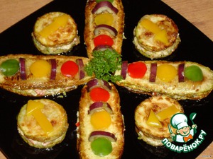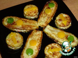 и накрываем кусочками кабачка. Также поступаем и с круглыми кусочками кабачка.