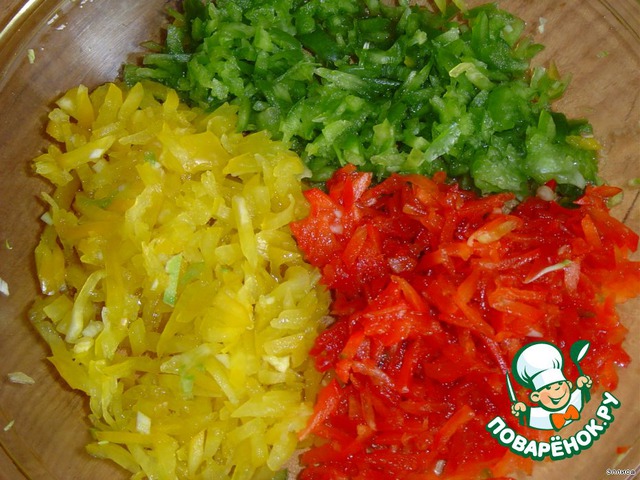 - Перец сладкий (красный, зеленый, желтый) — 3 шт