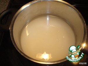 сахар залить водой 150 мл. и поставить на огонь. после закипания варить 7 мин.