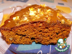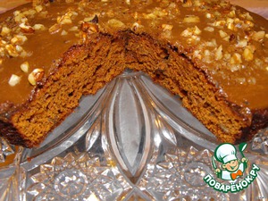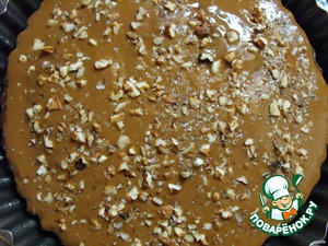 Полить этой смесью горячий пирог и посыпать оставшимися грецкими орехами.