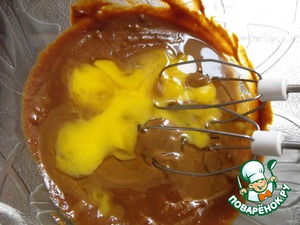 К 2/3 части вареной сгущенки добавить яйца и взбить миксером.