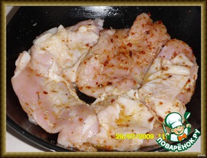 Обжарить слегка на сковородке (без масла), в маринаде хватает, с 2-х строн