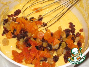 Остальную морковку натерла на крупной терке, добавила порезанные изюм, чернослив и курагу, цедру лимона, сок лимона, 2 ст. л. молотого миндаля, 1 ст. л. сахара и 15-20 г сливочного масла.