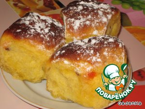 [+5]Часть булочек сделала с заливкой, а часть просто посыпала сахаром На пробу. Всё вкусно! Только верхушка без заливки не очень, суховаты. Я её полила глазурью из сахарной пудры и кипятка. То, что надо!