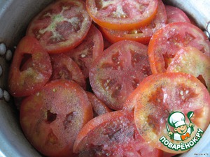 баклажан кружками,солим перчим. На средний огонь под крышку,на 2 часа, не открывать. Через час огонь убавить до минимума.