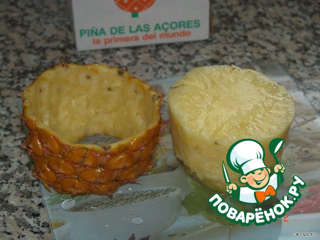 Отделяем от кожуры. (Из кожуры ананаса в Португалии делают прекрасный ликер. Настояв ее на коньячном спирте с добавлением сахара.) ;-)