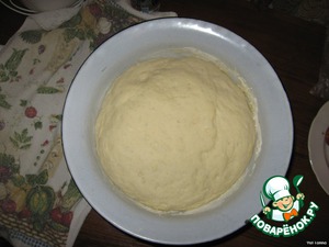 Вот так примерно тесто выглядит через 1 час, оно увеличилось раза в 2.