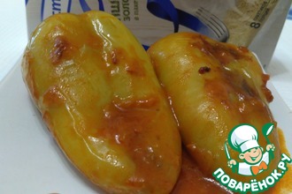 Выложить фаршированные шляпки в сотейник, добавить немного воды (можно сливок или разведенную сметану) и потушить под крышкой минут 10. -