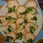 Изумительная закуска! Одна из моих самых любимых. Идея из книжки, название сейчас не вспомню (рецепт уже давно "живет" в моей кулинарной книжке), вроде, "Закуски из рыбы". Очень рекомендую!