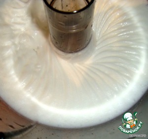 • Белки взбиваем с щепоткой соли в крепкую пену.