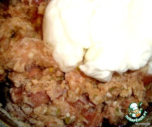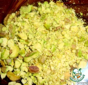 • Готовим фарш. В перекрученное мясо добавляем мясо кусочками, фисташки, эстрагон, манную крупу, соль, перец, мускатный орех. А также, 4 желтка. Все тщательно перемешиваем.