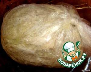 • Кладем получившееся колбаски в полиэтиленовый пакет, завязываем, и выкладываем в кипящую воду. Варим 1,5 часа.