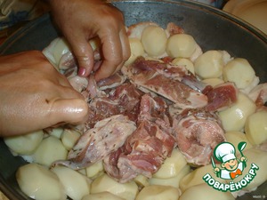 Как только картофель и мясо станут достаточно мягкими,достаем все мясо на блюдо.