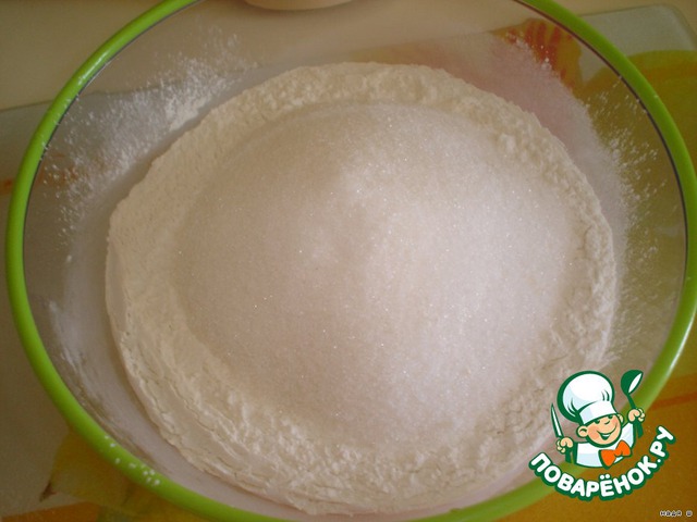 Сделать в ценре углубление,влить 3 яйца и масло растопленное.Перемешать