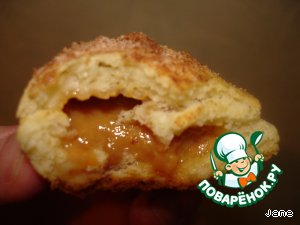 Вкусные пирожные из дрожжевого теста со сгущенкой.